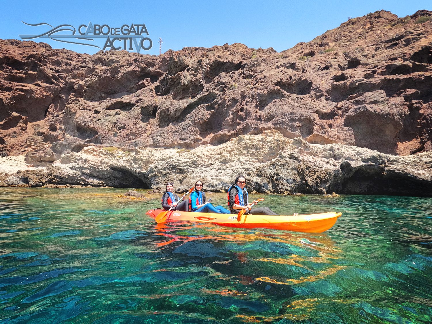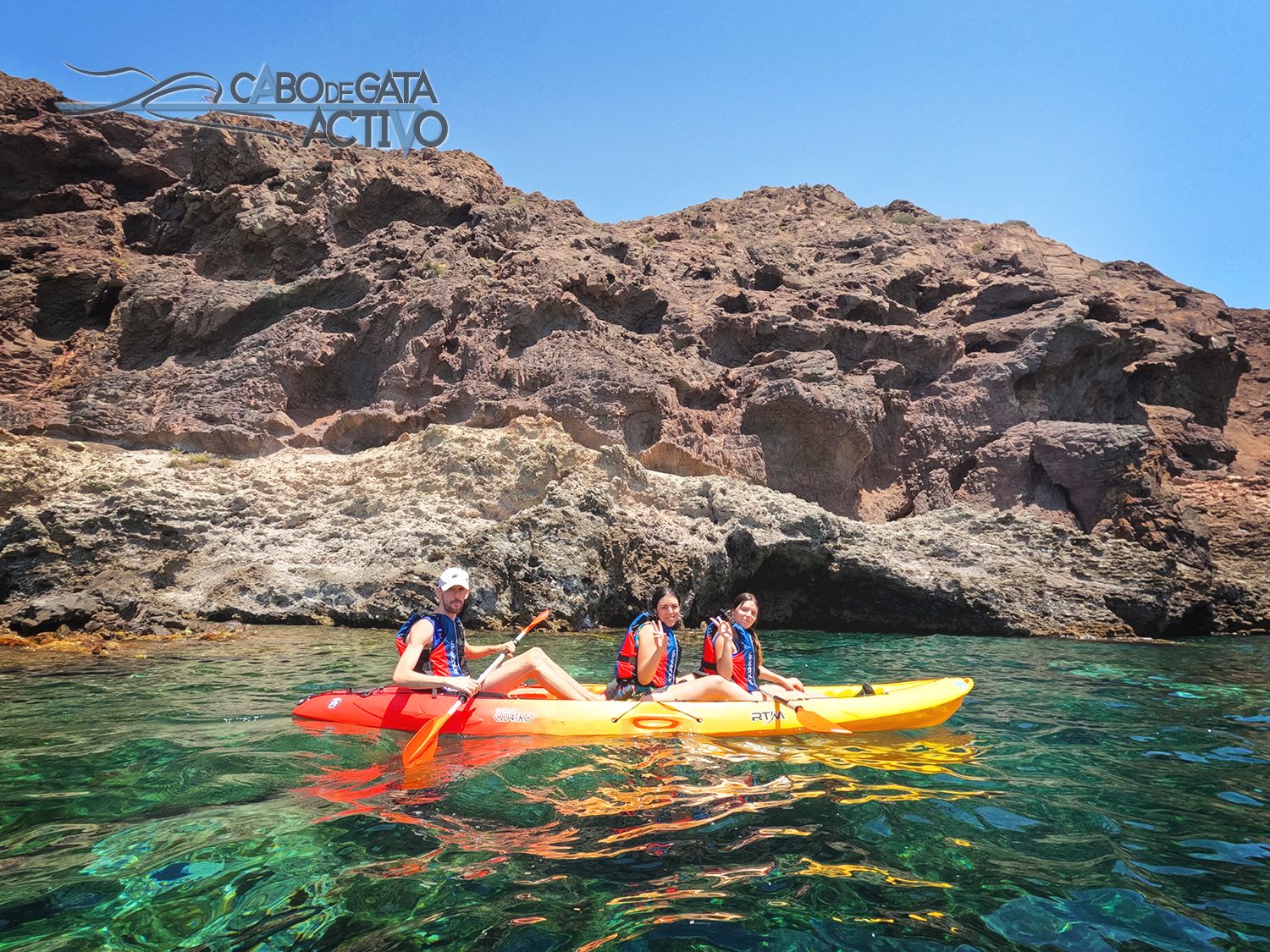Ya podéis ver las fotos de la ruta en kayak por Cabo de Gata. Durante la actividad en piragua con Cabo de Gata Activo, los guías vamos realizando un reportaje fotográfico. Os lleváis así un recuerdo de lo que vemos: calas y playas, fondos cristalinos, cuevas navegables y acantilados volcánicos. También arrecifes, piscinas naturales y praderas de posidonia… un recuerdo de la aventura en el Parque Natural Cabo de Gata – Níjar, en Almería para toda la vida.